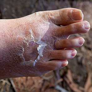 Blisters or skin infections can result from inadequate footwear or other items which constantly rub away at the skin of the feet. Both are often very painful and can decrease the patient’s mobility. Skin infections should be treated by a licensed medical professional.